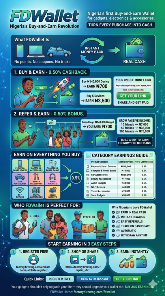 Intro: Stop leaving money on the table. Every time you buy a phone, laptop, or accessory at Factory Direct NG, we pay you back in real cash. No points, no gimmicks—just instant rewards.
